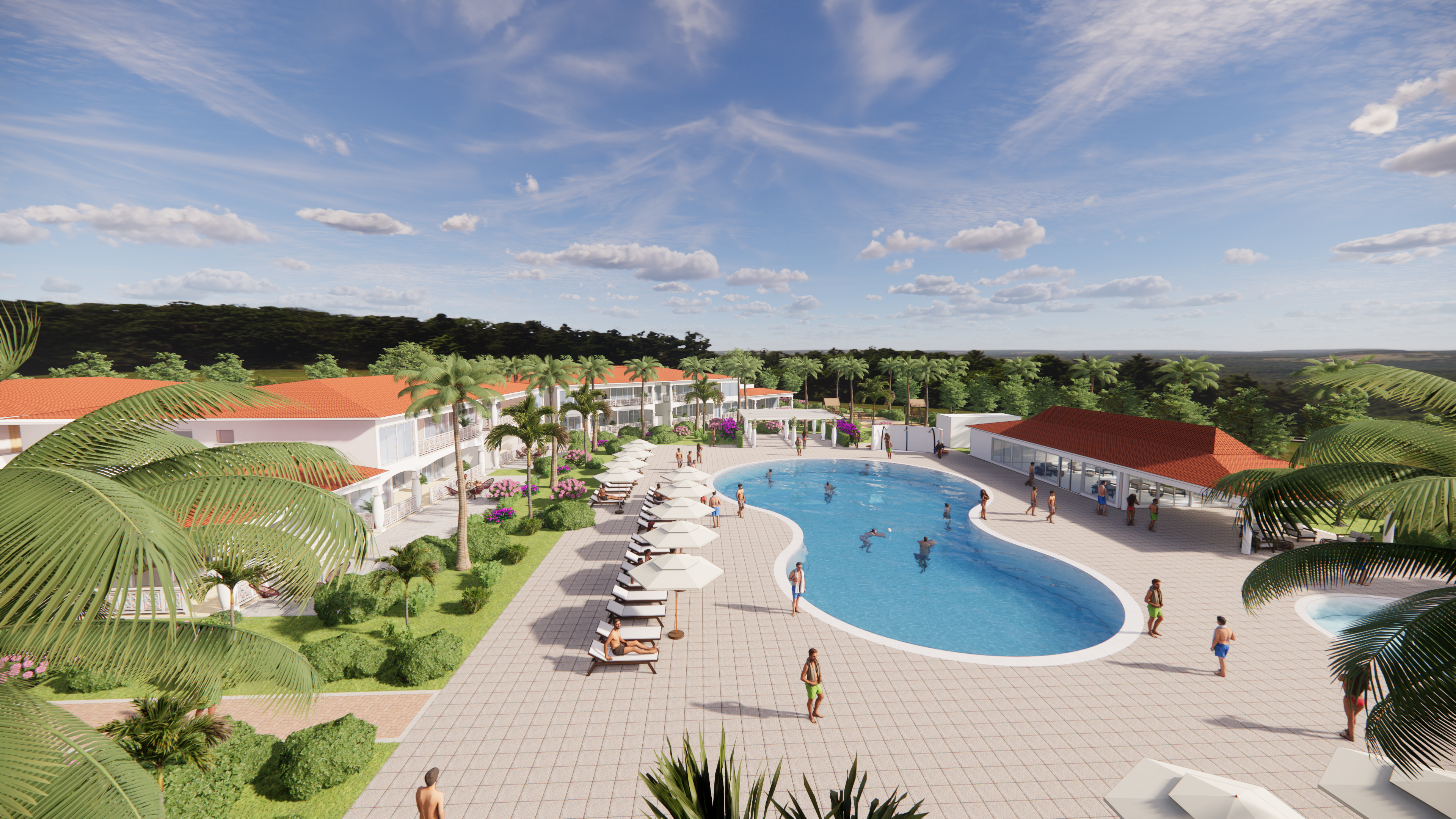 Este lujoso complejo de 55 apartamentos está ubicado cerca al campo de golf, ofreciendo a los residentes una combinación excepcional de vida de lujo y un entorno natural y sereno. Estratégicamente posicionado en las inmediaciones del Guavaberry Golf & Country Club, los residentes disfrutan de un acceso conveniente a un campo de golf de primera categoría y varias comodidades de estilo de vida. El complejo consta de 8 bloques de apartamentos, cada uno con dos pisos de altura, y un total de 55 apartamentos divididos en grupos de 7 unidades por bloque. Esta distribución fomenta un sentido de comunidad al tiempo que garantiza la privacidad.