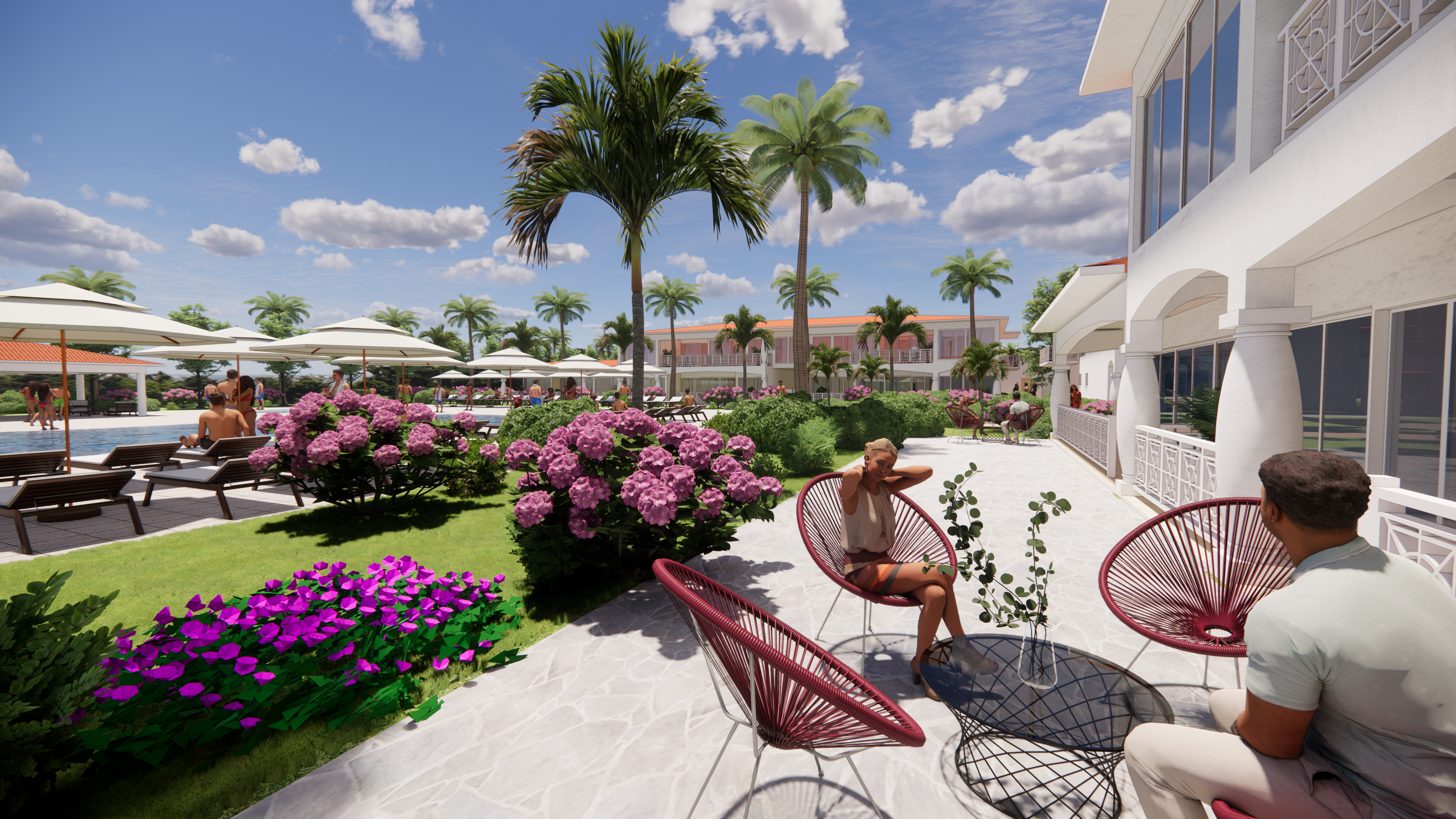 Los apartamentos están diseñados cuidadosamente con un enfoque en la comodidad y el lujo. Cada unidad cuenta con interiores espaciosos y bien iluminados con acabados de alta calidad cuidadosamente seleccionados. Las áreas comunes también están elegantemente decoradas. Una característica destacada del complejo es su piscina grande y bien mantenida, rodeada de áreas de relajación y tumbonas, lo que permite a los residentes relajarse y disfrutar del clima tropical junto a la piscina.
